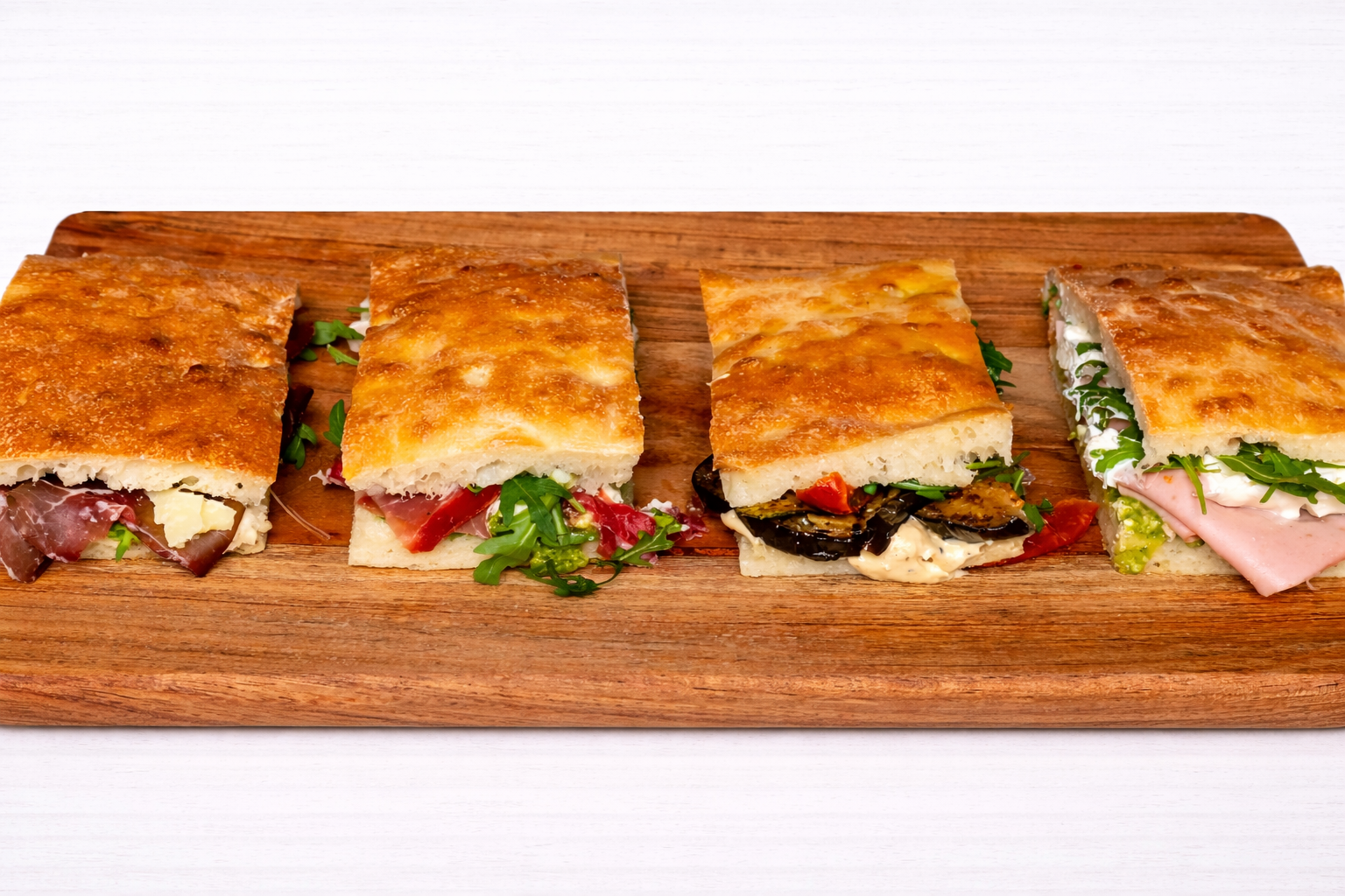 authentic Tuscan schiacciata sandwiches, baked fresh and filled generously.